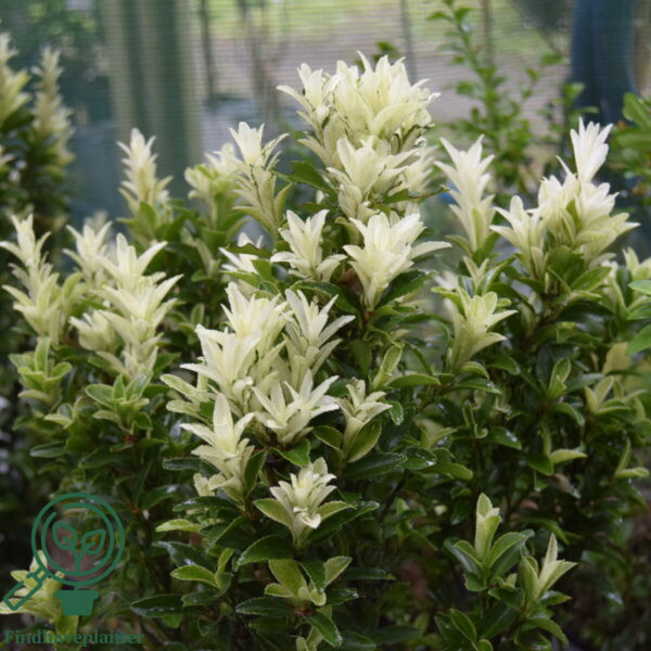 50-70 cm høj stedsegrøn busk. Nye blade har en perlemorshvid farve. Placeres i sol-skygge. Plantes i alm. havejord. Velegnet som solitær, formklippet eller hæk.Svær at skaffe