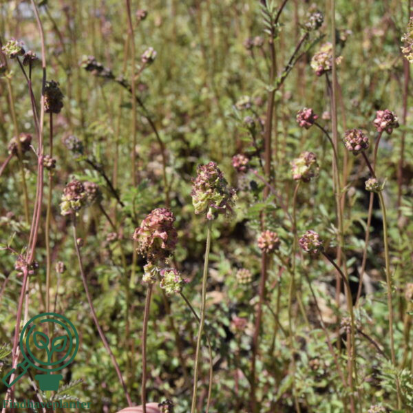30-60 cm. høj staude/vild plante. Rødlige-grønne blomster samlet i runde aks. Blomstrer i maj-juni. Trives bedst i fuld sol. Ynder en let, sandet eller gruset jord.Bør kunne skaffes
